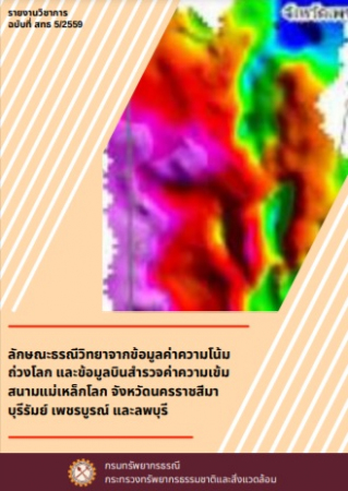 ลักษณะธรณีวิทยาจากข้อมูลค่าความโน้มถ่วงโลกและข้อมูลบินสำรวจค่าความเข้มสนามแม่เหล็กโลก จังหวัดนครราชสีมา บุรีรัมย์ เพชรบูรณ์และลพบุรี